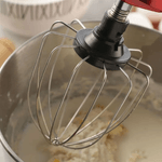Accesorios incluidos: Batidor de alambre, mezclador plano, gancho para masas pesadas y tapa anti-salpicaduras — Todo lo necesario para repostería, panadería y mezclas caseras.