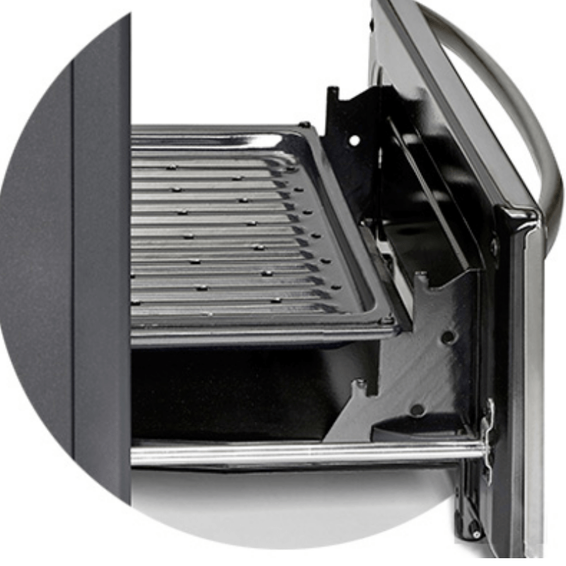 También incluye un cajón parrilla deslizable que permite cocinar y gratinar por radiación en tres diferentes posiciones. Además posee grill eléctrico.