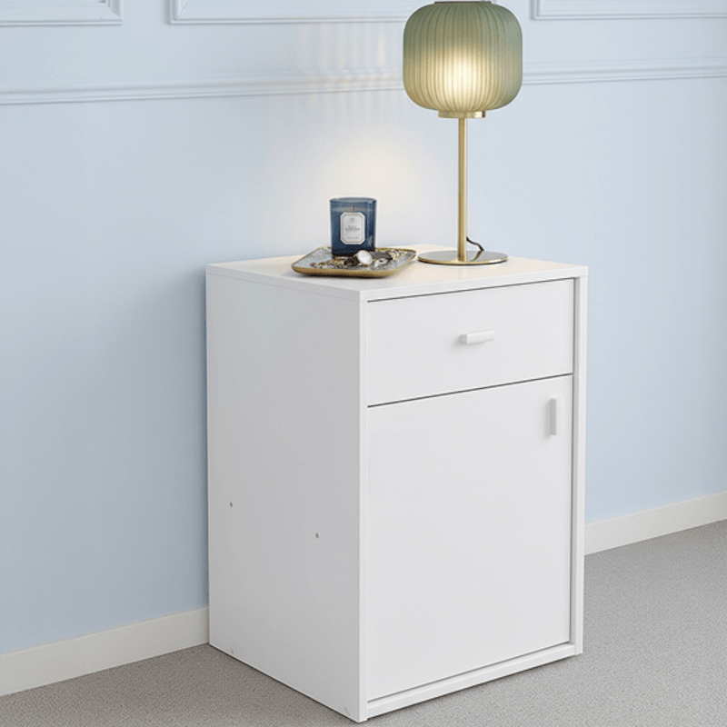 MUEBLES COLCHONES Y TEXTILHabitaciónMesas de LuzMESA DE LUZ E-MOSCONI 1PUERTA 1CAJON DAKAR PLUS TONO BLANCO 57266
