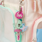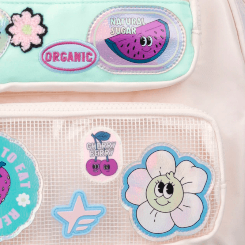 • Bolsillos frontales en PVC cuadriculado.