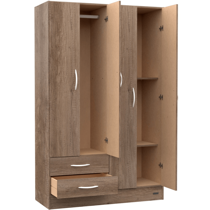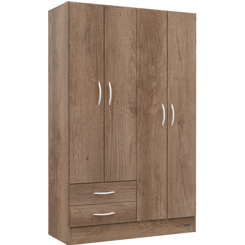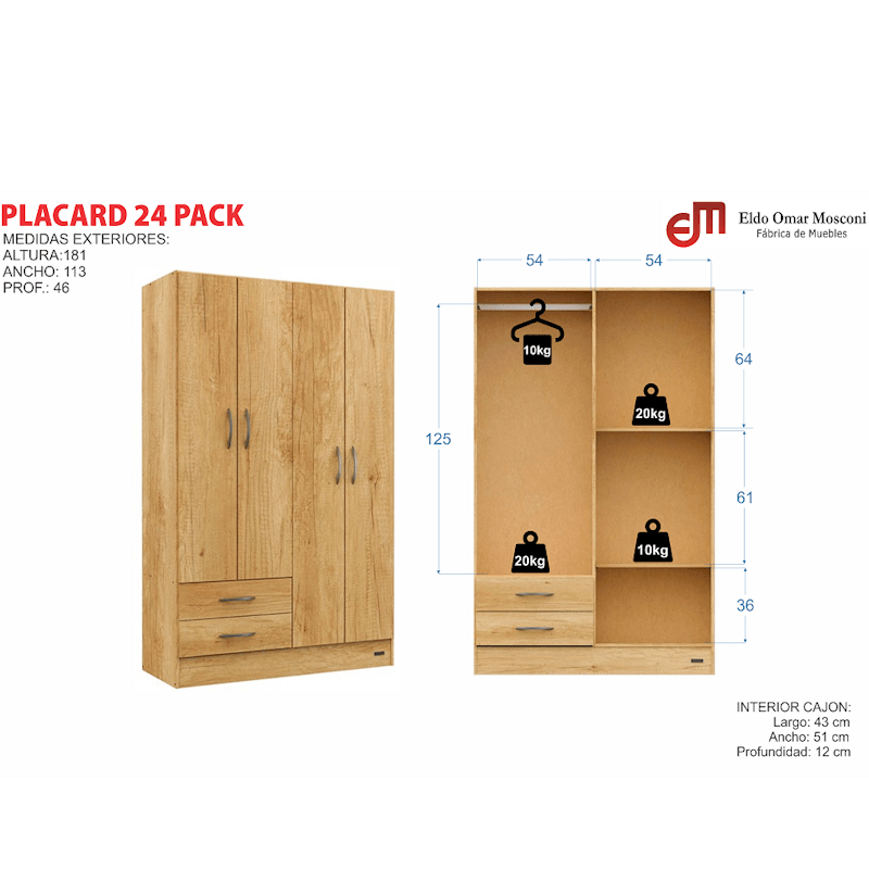 Capacidad: 4 puertas, 2 cajones deslizantes con correderas plásticas, 2 estantes fijos y 1 estante regulable.