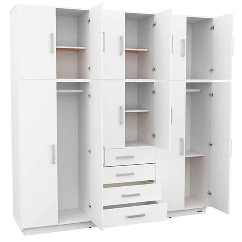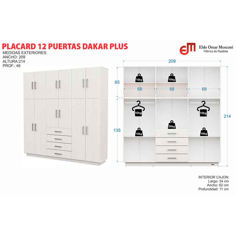 Capacidad: Incluye baulera superior, 4 cajones con correderas metálicas, y estantes regulables.