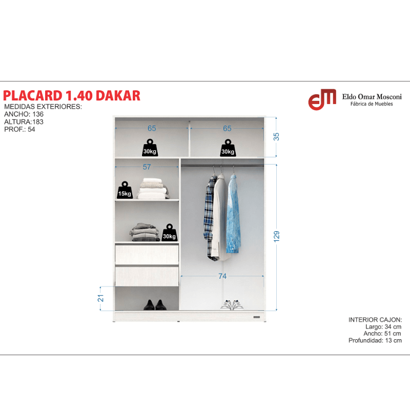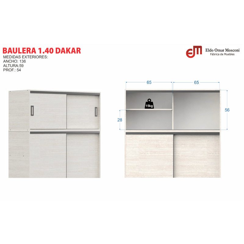 •Medidas: 136 x 242 x 54 cm