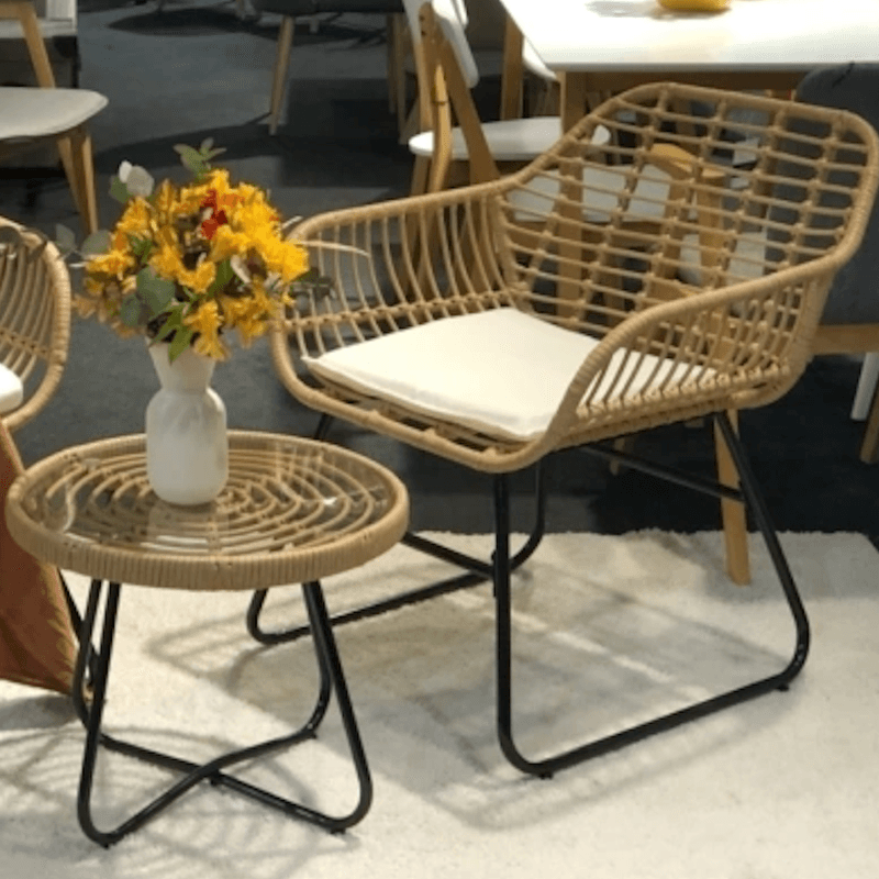 Incluye: 2 sillas + 1 mesa auxiliar, ideal para exteriores